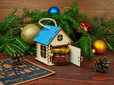 Подарочная упаковка “Домик” выполнена в виде игрушки, которую легко можно поставить на стол, шкаф или повесить на стену. Ее также можно использовать, как елочное украшение или новогодний подарок. Она изготовлена из экологически чистых материалов и обладает чарующим древесным ароматом. В домике открывается дверца, и в него можно поместить небольшую баночку с медом или вареньем. Яркие цвета крыши домиков и эффектная конструкция помогут украсить любой интерьер, как в офисе, так и в квартире. Подарочная упаковка “Домик” позволит вам сделать оригинальный и запоминающийся подарок для руководителя или коллеги. Гравировка (Без чернения) на данный товар осуществляется бесплатно. Оплачивается только настройка оборудования в размере 500 рублей на весь тираж.