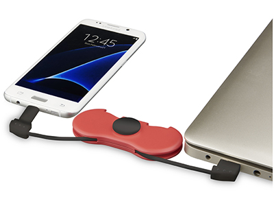 Спиннер с зарядными кабелями. Отличная комбинация спиннера (Spin-It Widget™ ) и функции зарядки аккумулятора. В комплекте кабель для зарядки с коннекторами 2- в -1 и Type C, расположенном в слоте. Играйте и заряжайте аккумулятор одновременно! Соответствует CPSIA. Пластик.