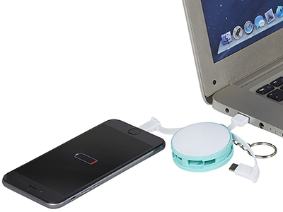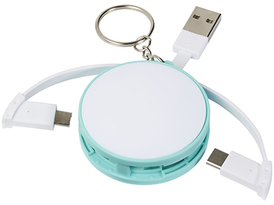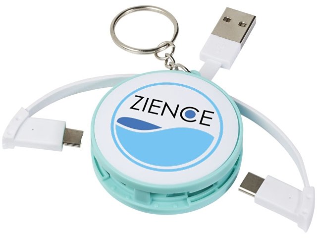 Зарядный кабель 3-в-1. Зарядный кабель 3-в-1 состоит из USB-шнура типа A, высокоскоростного шнура типа C и коннектора, который подходит для устройств iOS и Android. Для хранения кабель можно обернуть вокруг устройства. Поставляется с цепочкой для удобного ношения. Устройства на базе iOS заряжаются стороной без штырьков, устройства на базе Android — стороной со штырьками. ABS пластик. Тампопечать (1 цвет (белые изделия)) на данный товар осуществляется бесплатно. Оплачивается только настройка оборудования в размере 2300 рублей на весь тираж.