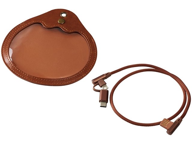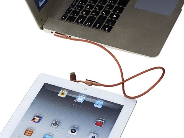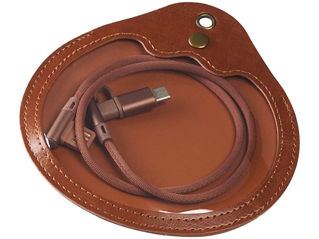 Кабель Ecliptic 3-в-1 для зарядки. Кабель Ecliptic 3-в-1 хранится в мягком защитном мешочке. Это двусторонний интерфейсный кабель в нейлоновой оплетке с повернутыми под прямым углом разъемами. Он оснащен разъемом USB типа С и двойным разъемом 2-в-1, подходящим как для устройств с Apple iOS, так и с Android. Обеспечивает зарядку и передачу данных. Длина кабеля: 50 см. АБС-пластик, ПУ.