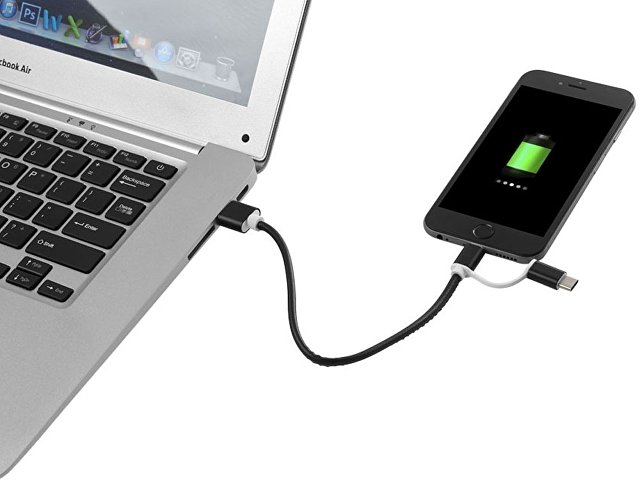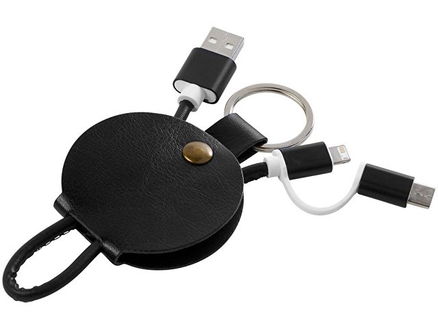 Кабель для зарядки Gist 3-в-1. Кабель для зарядки Gist 3-в-1 закрыт мягким защитным манжетом и оснащен разъемом USB типа С и двойным разъемом 2-в-1, подходящим как для устройств с Apple iOS, так и с Android. С помощью имеющегося кольца зарядный комплект можно поцепить на ключи или сумку. Длина кабеля: 20 cm. ПУ. Тиснение (Блинт) на данный товар осуществляется бесплатно. Оплачивается только настройка оборудования в размере 3000 рублей на весь тираж.
