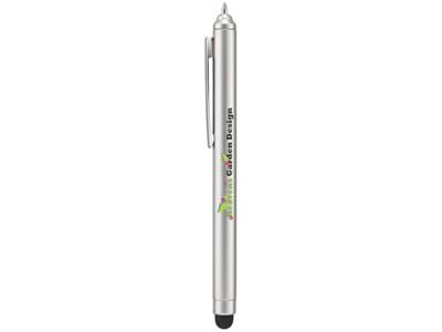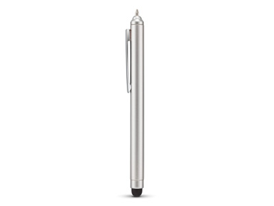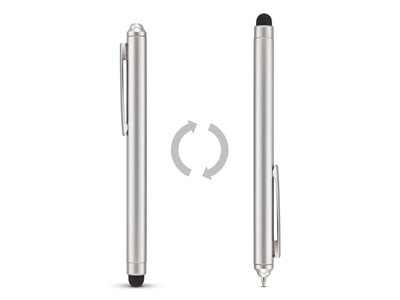 Стильная шариковая ручка-гибрид, включает в себя как собственно ручку (сменный стержень с черными чернилами), так и стилус, необходимый для использования сенсорных девайсов. Наконечник шариковой ручки спрятан в ее верхней части и становится видимым при переворачивании ручки. Возможно нанесение персонализации на пластиковый корпус. Тампопечать (1 цвет (цветные изделия)) на данный товар осуществляется бесплатно. Оплачивается только настройка оборудования в размере 2300 рублей на весь тираж.