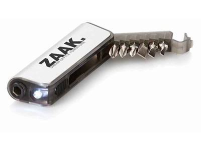 Мининабор инструментов Reno «7 в 1» с фонариком. В комплект входят шесть насадок, включая три плоских шлица. Магнитная головка отвертки удерживает насадки на месте. Светодиодный фонарик. Батарейка включена в комплект. Пластик. Тампопечать (1 цвет (цветные изделия)) на данный товар осуществляется бесплатно. Оплачивается только настройка оборудования в размере 2300 рублей на весь тираж.