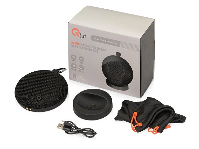Портативная колонка "Magnus" от бренда Qjet традиционно обладает множеством полезных функций и отличается высоким качеством сборки и используемых материалов. Колонка обладает "живым" и громким звучанием. В зависимости от уровня громкости может воспроизводить музыку до 8 часов. "Magnus" с покрытием soft-touch может быть как стильным дополнением интерьера, так и верным попутчиком в дороге благодаря карабину в комплекте. Просто пристегните карабин к рюкзаку или палатке, и наслаждайтесь любимой музыкой. Имеется защита от влаги IPX6, значит не страшен даже сильный ливень! В комплекте с колонкой идет также зарядная док-станция с магнитным креплением. Чтобы подзарядить колонку, просто поднесите ее к зарядной станции - колонка установится моментально и начнется процесс зарядки. В док-станции находится дополнительный порт USB для зарядки других устройств.