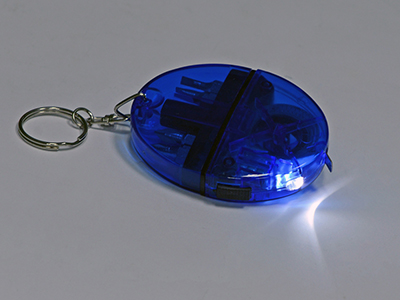 Оригинальный и многофункциональный брелок обладает ярким внешним видом, за которым скрывается весьма полезное содержание. Внутри брелока встроена рулетка, набор отверток и фонарик. Тампопечать (1 цвет (цветные изделия)) на данный товар осуществляется бесплатно. Оплачивается только настройка оборудования в размере 2300 рублей на весь тираж.