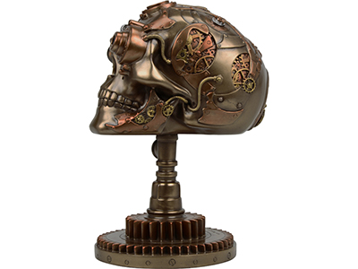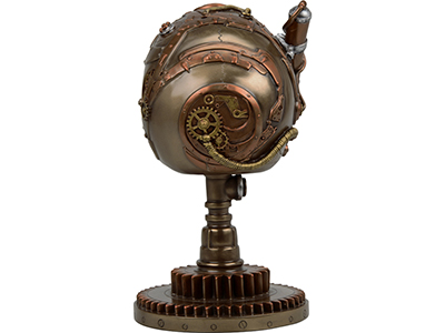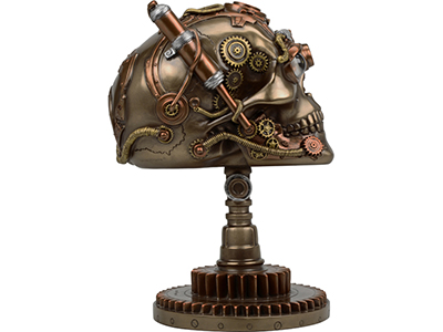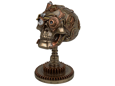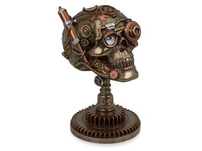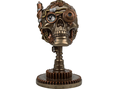 Интересная композиция позволит украсить интерьер в стиле стимпанк. Композиция в виде черепа со множеством шестеренок и прочих механических деталей выполнена из полистоуна в бронзовой расцветке.