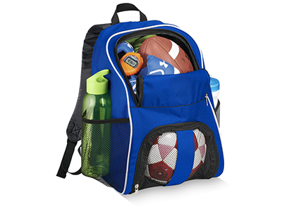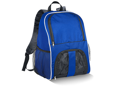 Рюкзак Goal. Большое основное отделение на молнии. Отделение из сетки спереди достаточно большое, чтобы поместить баскетбольный мяч, футбольный мяч, волейбольный мяч или другое спортивное снаряжение. Два кармана из сетки по бокам. Регулируемые ремни. Ручка вверху. Полиэстер 600D. Термотрансфер (1 цвет (цветные изделия)) на данный товар осуществляется бесплатно. Оплачивается только настройка оборудования в размере 5400 рублей на весь тираж.