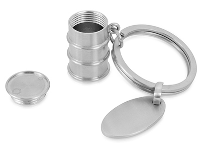 Необычный брелок с секретом в форме барреля придется по вкусу любителям необычных вещей. Брелок имеет потайное отделение, в которое можно положить какую-нибудь мелочь или записку. Гравировка (Без чернения) на данный товар осуществляется бесплатно. Оплачивается только настройка оборудования в размере 500 рублей на весь тираж.