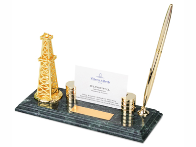 Практичный и оригинальный подарок для руководителей или представителей партнерских организаций. Настольный прибор с визитницей и подставкой для ручки позволит организовать рабочее пространство и подчеркнуть специфику работы компании. Гравировка (Без чернения) на данный товар осуществляется бесплатно. Оплачивается только настройка оборудования в размере 500 рублей на весь тираж.